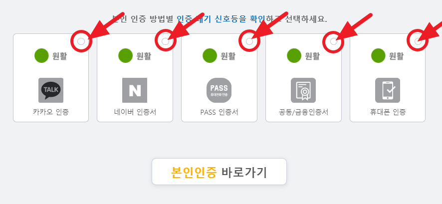 9일 오후 8시 만18~49세 연령층을 대상으로 한 백신 접종 본인인증 화면에서는 추진단이 설명한 대로 인증 수단별로 동시 접속자가 얼마나 몰리고 있는지 질병관리청 사전예약. 법인명의 휴대폰의 본인인증 관련한 자세한 내용은 이용중인 통신사로 '법인폰 본인인증 서비스' 에 대해 문의하여 주시기 바랍니다.